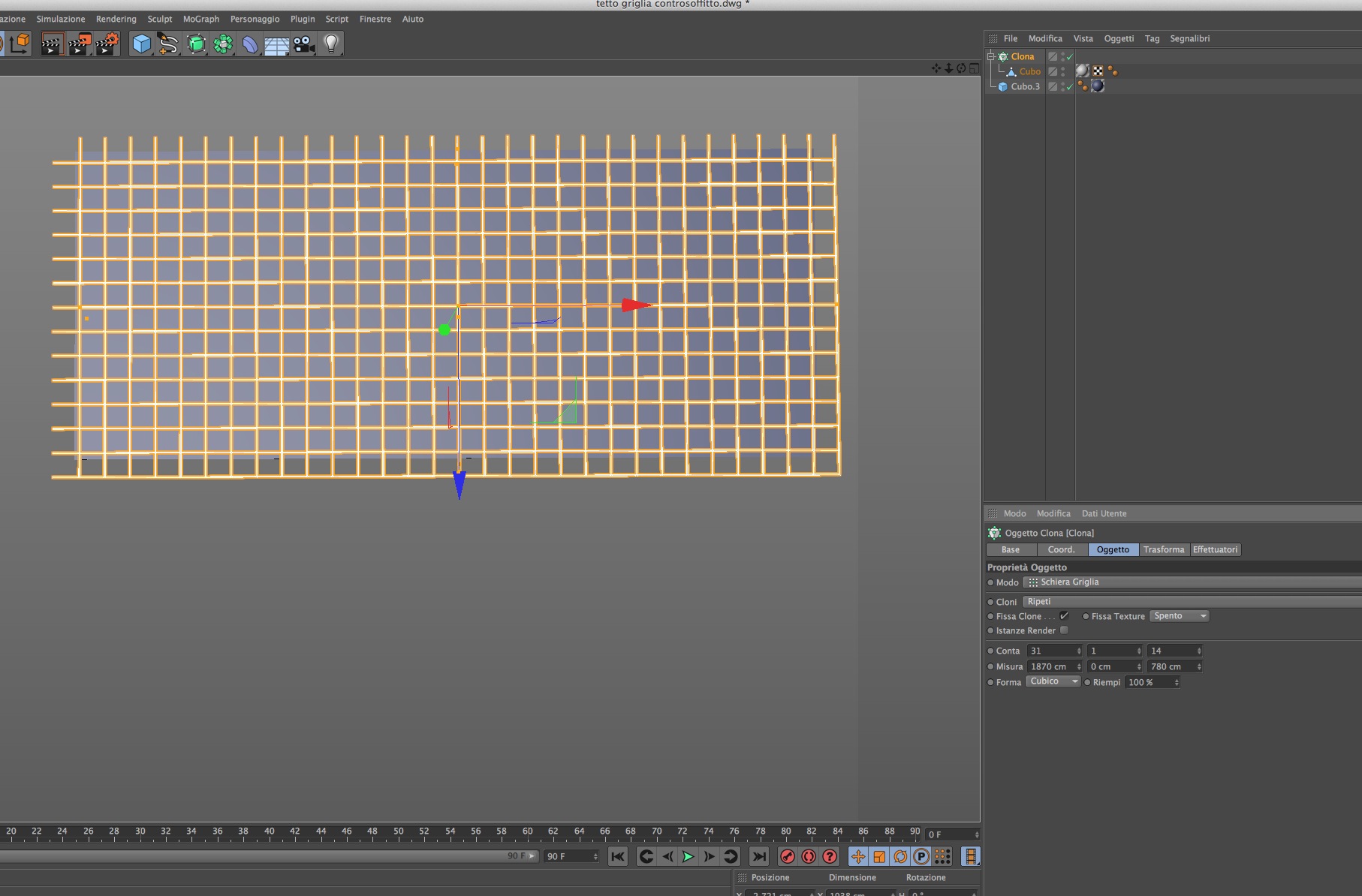 Sarà stato il raffreddore ma non mi connetteva il cervello... Dopo una sana dose di aspirine adesso tutto si fa più chiaro... Clonare lungo l asse perpendicolare con 64cm di passo prima le verticali e poi le orizzontali... Grazie mille per la pazienza :D