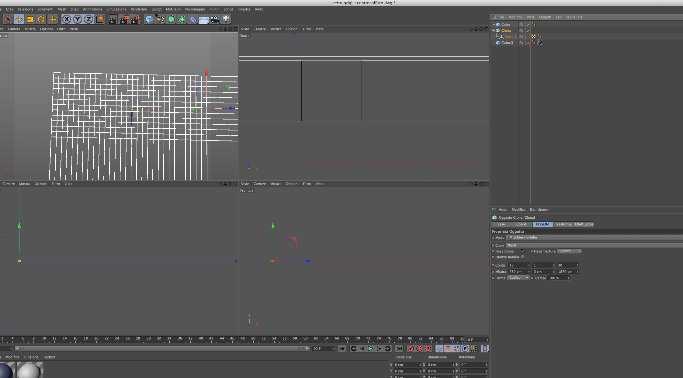 se intendi i montanti in alluminio che tengono su i pannelli in cartongesso, stai molto di meno a creare 2 cubi, uno orizzontale e uno verticale. dopodiché li cloni con mograph.