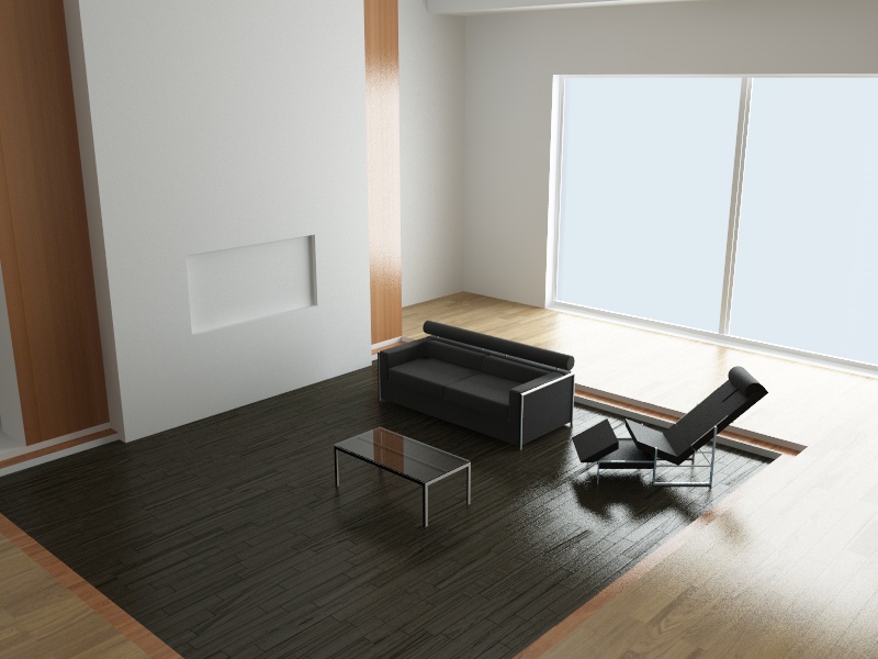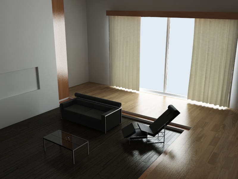 nel parquet più scuro penso tu abbia invertito la mappa del bump, nel riflesso vicino alla poltrona sembrano rialzate le fughe