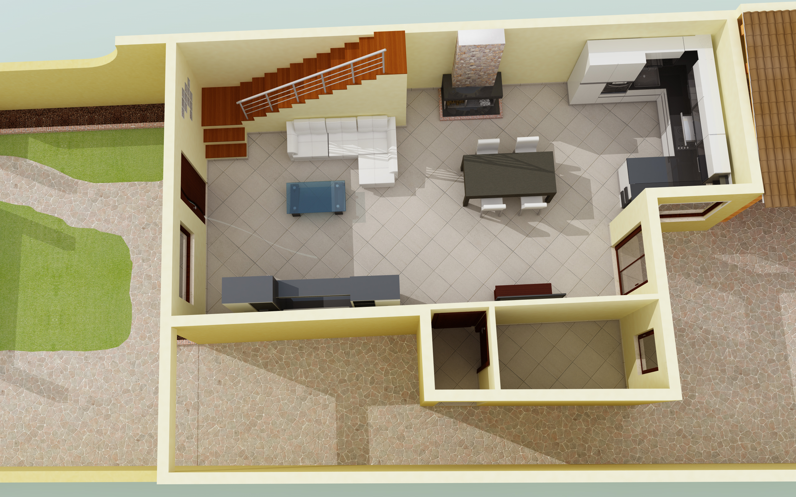 Comunque oltre a concordare con quanto detto dal nostro Gabriele (soprattutto per il soffitto mancante!), direi che da neofita hai fatto un discreto lavoro! Per gli spaccati dall'alto prova a dare un colore sulla superficie di sezione così risalta meglio.