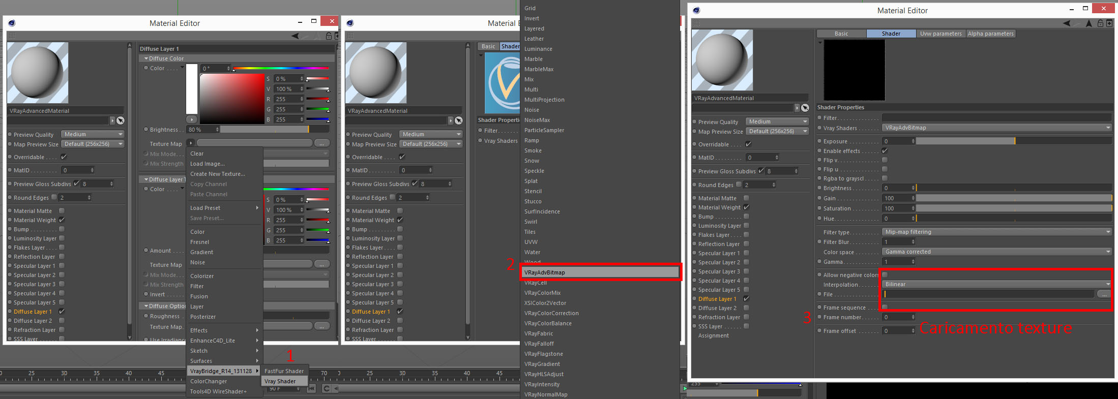 In sostanza si procede come per un normale materiale di vray, solo che ci devi aggiungere un passaggio (vrayshader) prima dell' inserimento di ogni texture.