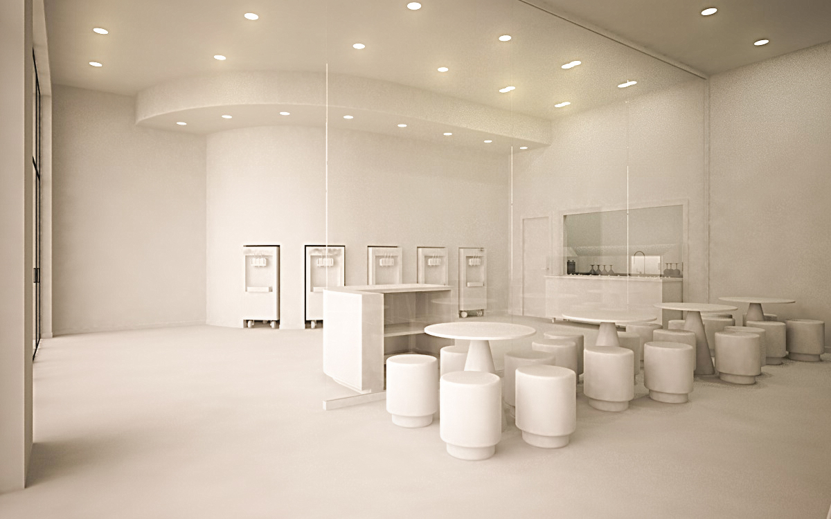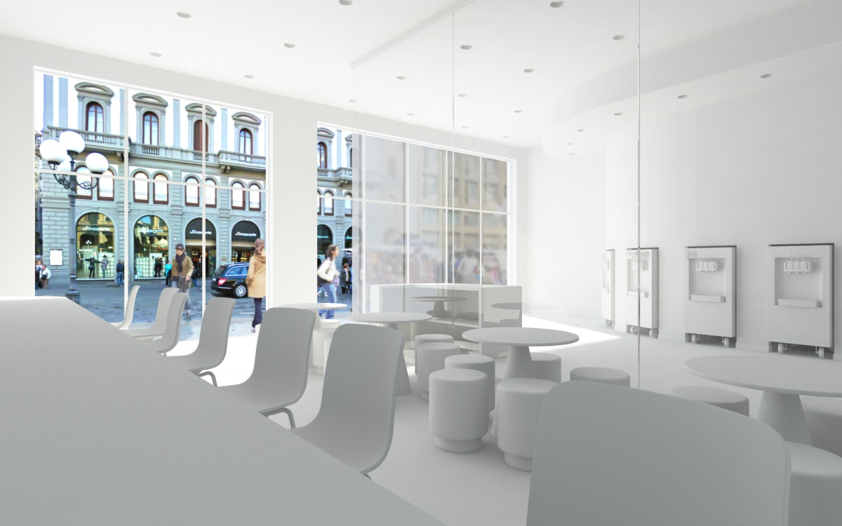 I clienti mi hanno fornito i flie cad dai quali creare il modello, che come vedete in linea di massima salvo particolari è già modellato. E per la renderizzazione devo attenermi alla stretta tematica del franchising sul quale si appoggerà tale yogurteria.