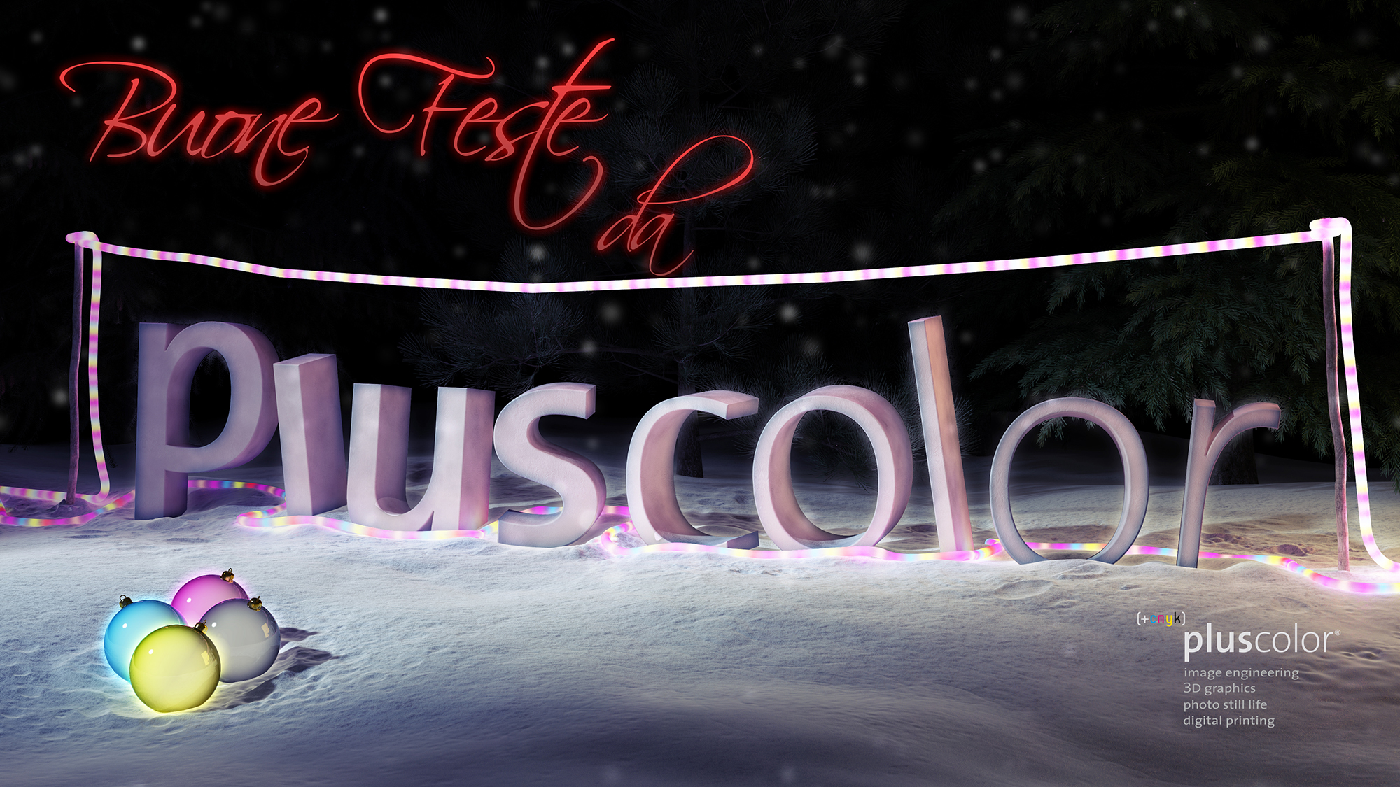 La neve del pavimento è una landa, scolpita poi in c4d per "muoverla" un po' e creare le fosse intorno alle lettere.