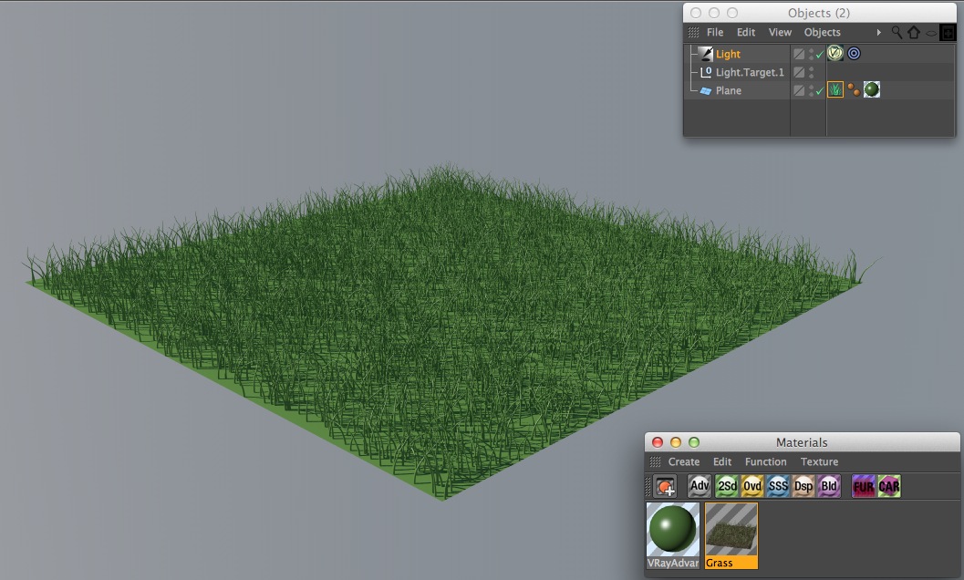 Nella mia personale esperienza ho trovato VrayFastFur più leggero che non Hair, ad esempio. Poi però bisogna vedere la superficie da "erbizzare" e il pc.................