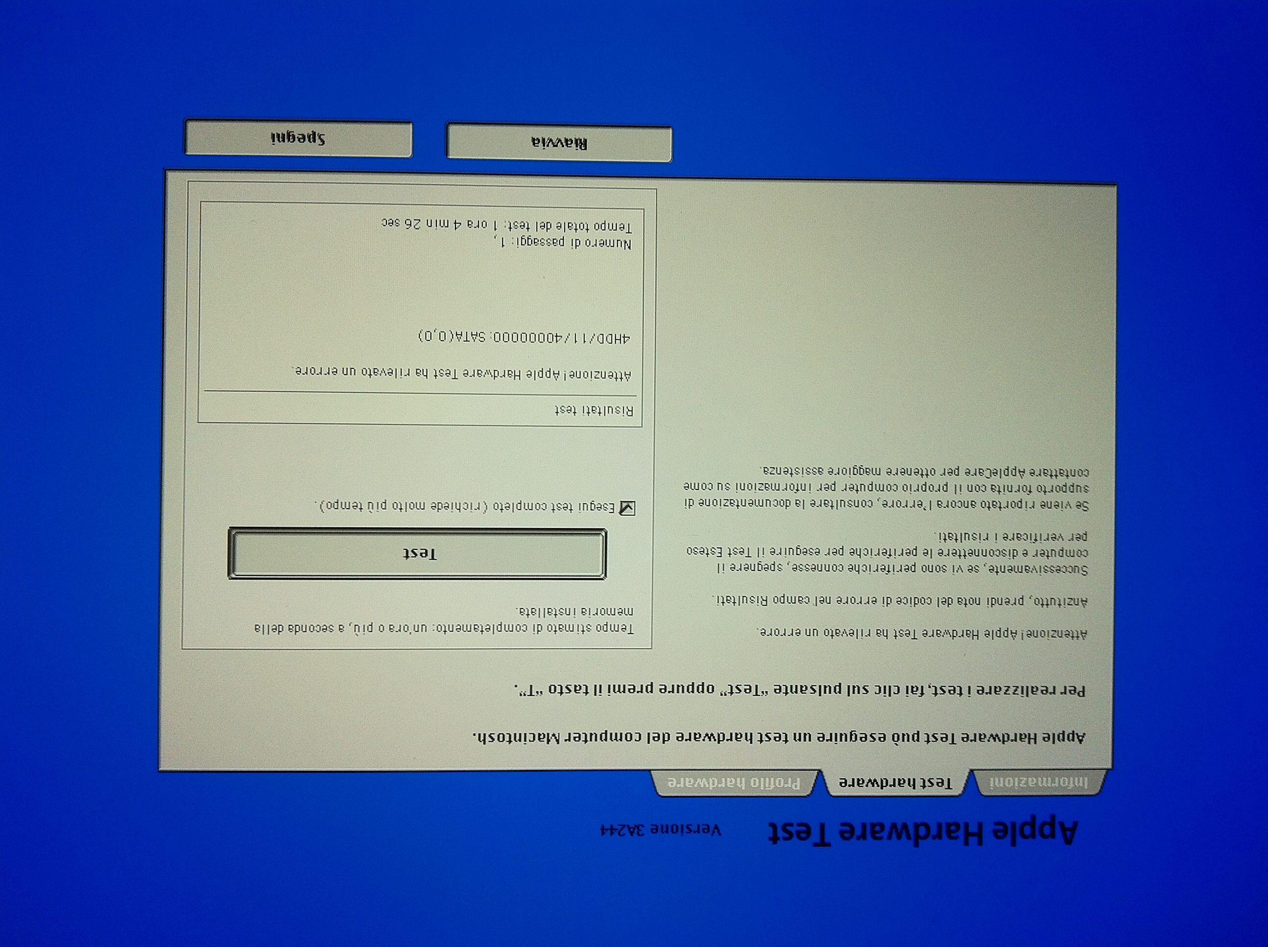 mi sembra più un problema sul disco, come diceva Cappellaiomatto, ma il test che Apple fornisce agli utenti è un po' all'acqua di rose diciamo..potrebbe essere di tutto. Se il mac è in garanzia, portalo in assistenza con lo screenshot che hai postato, l'intervento è gratuito.