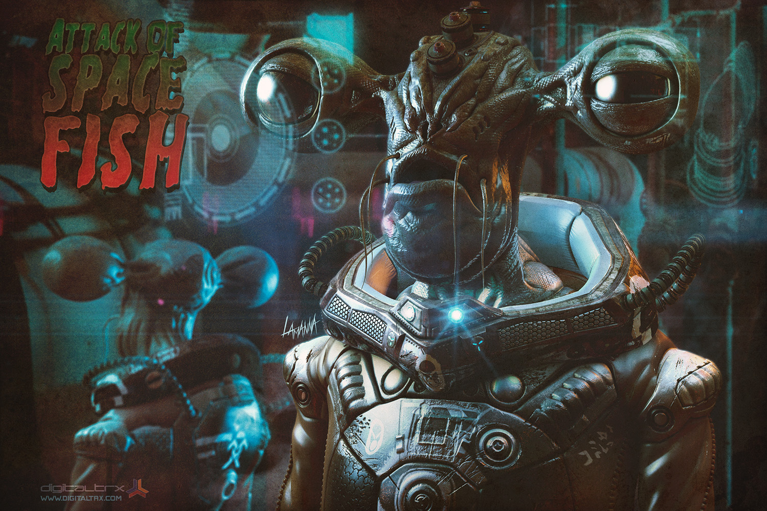 Una volta finito mi sembrava TROOOOPPOOOOO unalocandina di quei film di mostri degli anni 70, quindi ho calcato la mano sulla post e ho aggiunto il titolo con font adeguato!!!