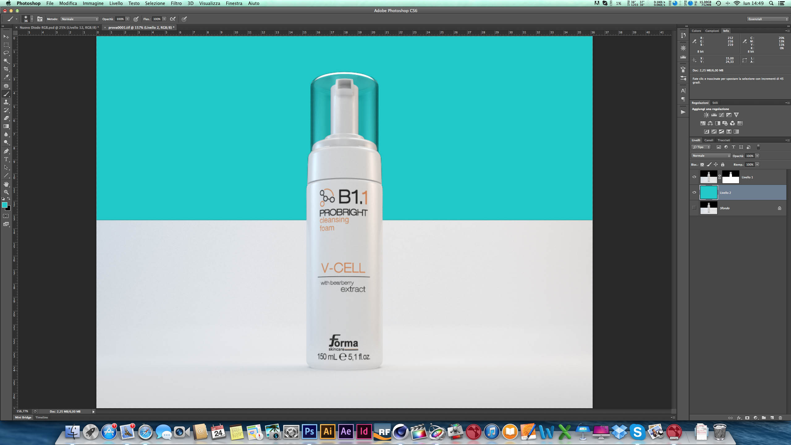 Ho realizzato un prodotto cosmetico per un azienda renderizzato con VRay, il quale ha un tappo trasparente e deve essere inserito in un catalogo con l'ausilio di photoshop.