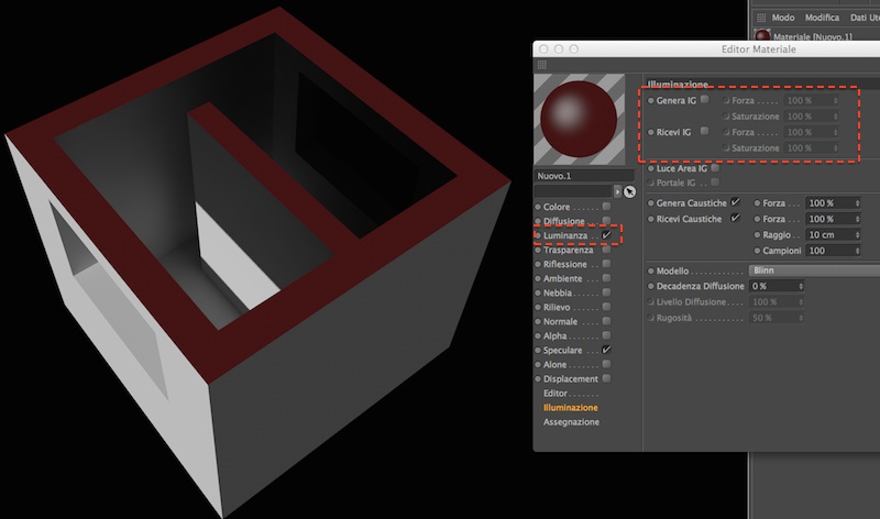 riguardo invece ai vari settaggi, la mia scena è composta dal modello ovviamente.