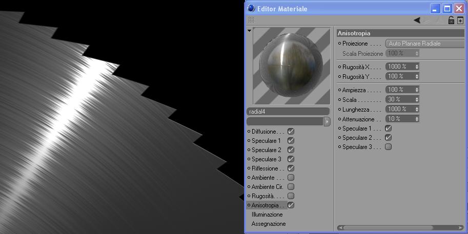 Ciao myskin! allora, quel materiale sono già riuscita a crearlo, proprio con il lumas e l'anisotropia…ma a me serve proprio creare un rilievo che segua la forma circolare della lama…non so se riesco a farmi capire…ci sarà un modo per riuscirci??????