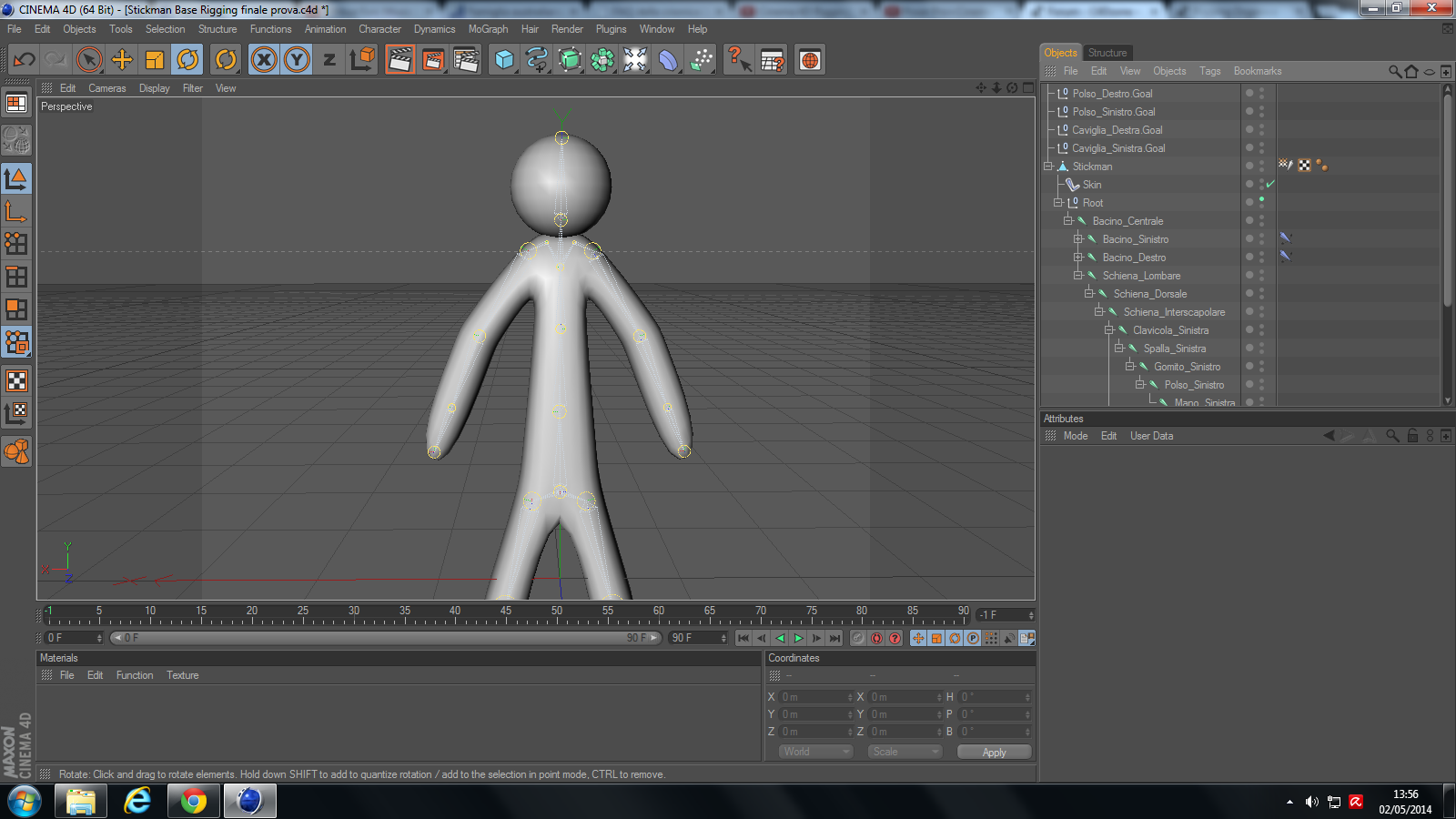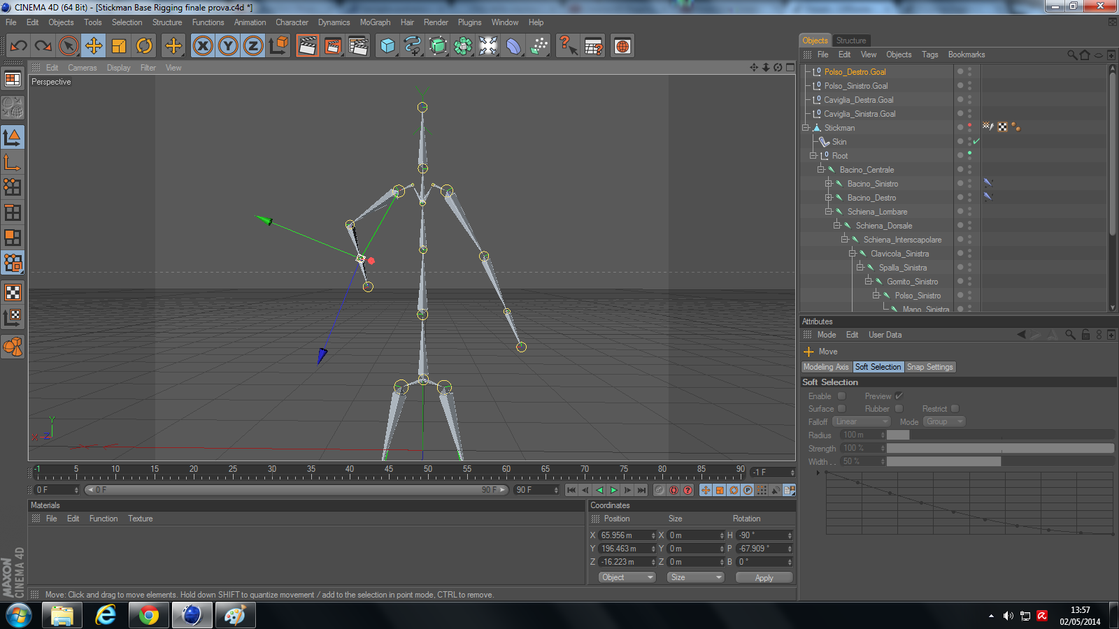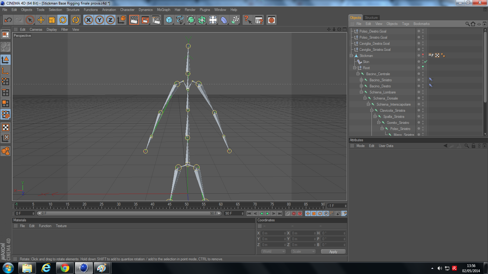 la posizione di partenza che ha la il personaggio che ho modellato e di conseguenza anche lo scheletro è questa.