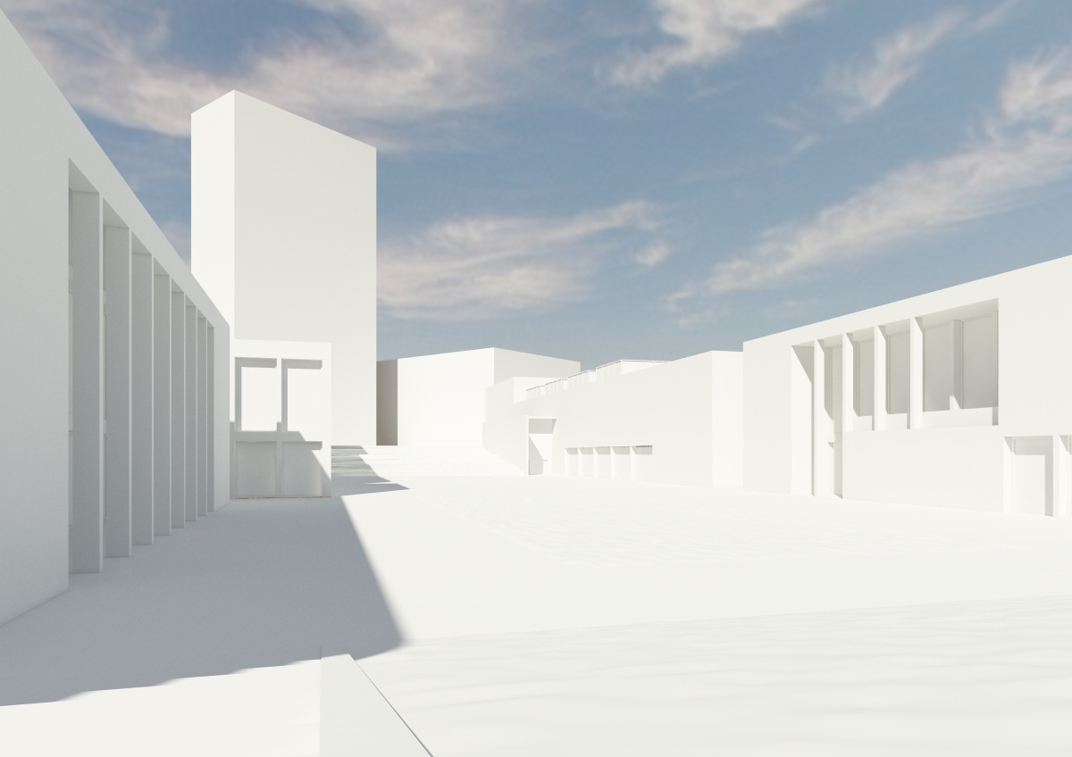 (i due edifici riflettenti sullo sfondo non sono progettati internamente e devono rimanere "neutri" )