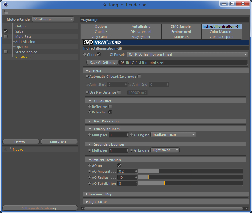 camera fisica settata come detto prima ISO 200 f8/200, bilanciamento neutro e senza vignettatura