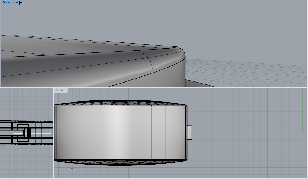 Se lo esporti da rhino, aumenta la qualita' della mesh, sparando piu poligoni e il difetto andra' a sparire, purtroppo cinema e' un software poligonale invece rhino e' un software basato sulle nurbs e fino a che rimane dentro rhino tutto ok ma appena esporti hai bisogno di una piu ampia gamma di poligoni... 8-)