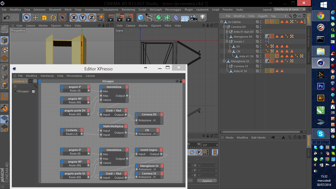 Soluzione non molto comoda poichè una volta perso il focus dal comando costante devo riaprire Xpresso per poter modificare i valori perché, ad esempio, cerniera DX essendo collegata ad Xpresso non mi permette la modifica diretta del valore dalla tab coordinate.