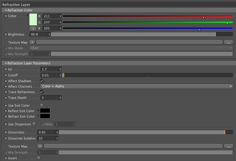 Intanto ecco i miei. Questi sono gli unici canali attivi, tra l'altro non sono sicuro di aver modificato ad esempio alcun parametro dello specular del vetro.