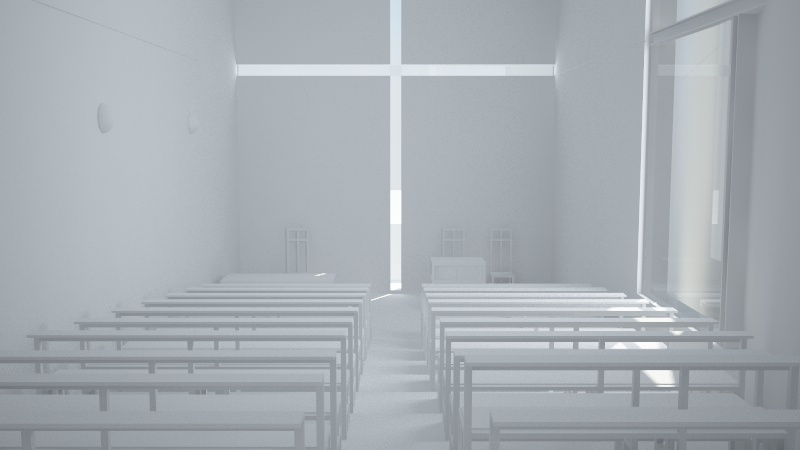 Come materiali ho lasciato solo il vetro per far entrare la luce e il bianco generico per il resto della scena
