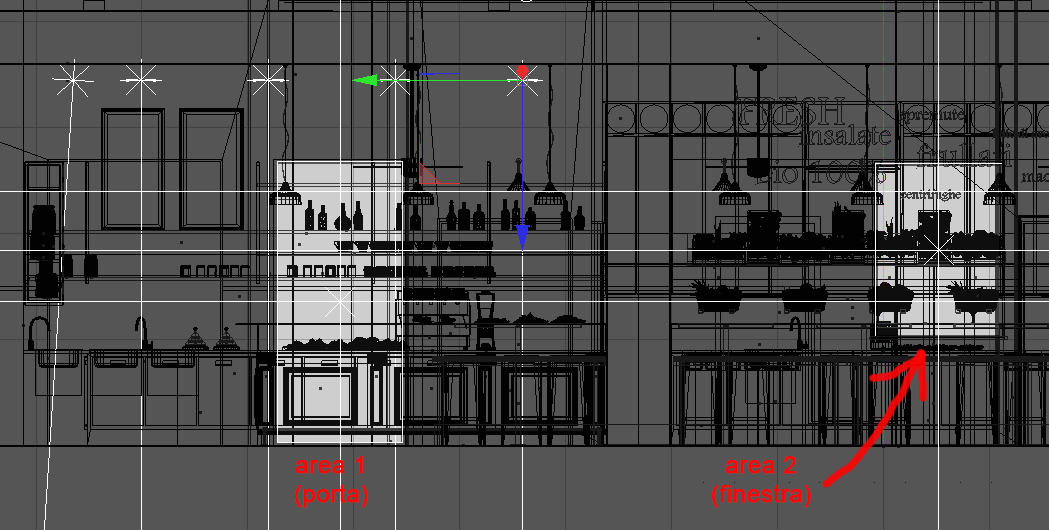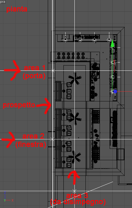 -luce area 3 (posizionata nel disimpegno,dietro un portale) di dimensioni 214x410 cm (l'altezza interna del disimpegno infatti è di 410 cm mentre nella zona bar/gelateria si abbassa a 360.