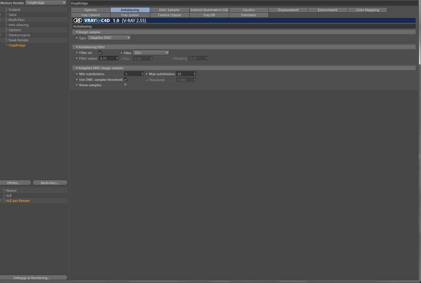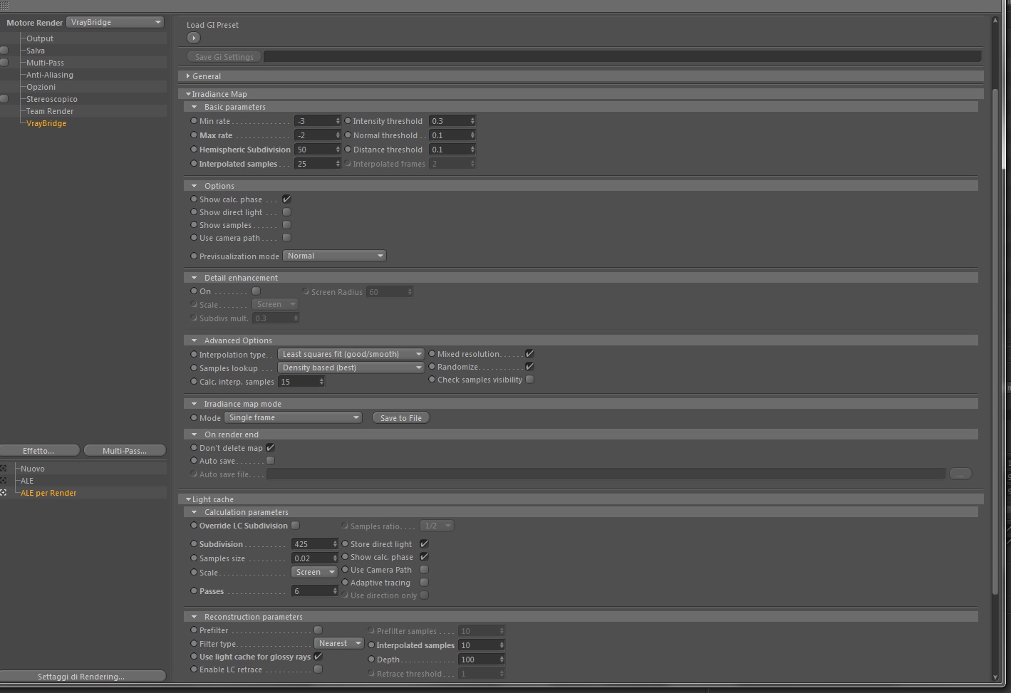 o i parametri della G.I. tipo (nell'Irradiance Map)hemispheric subdivision/interpolated samples ed anche (nella Light Cache) il valore "subdivision "?