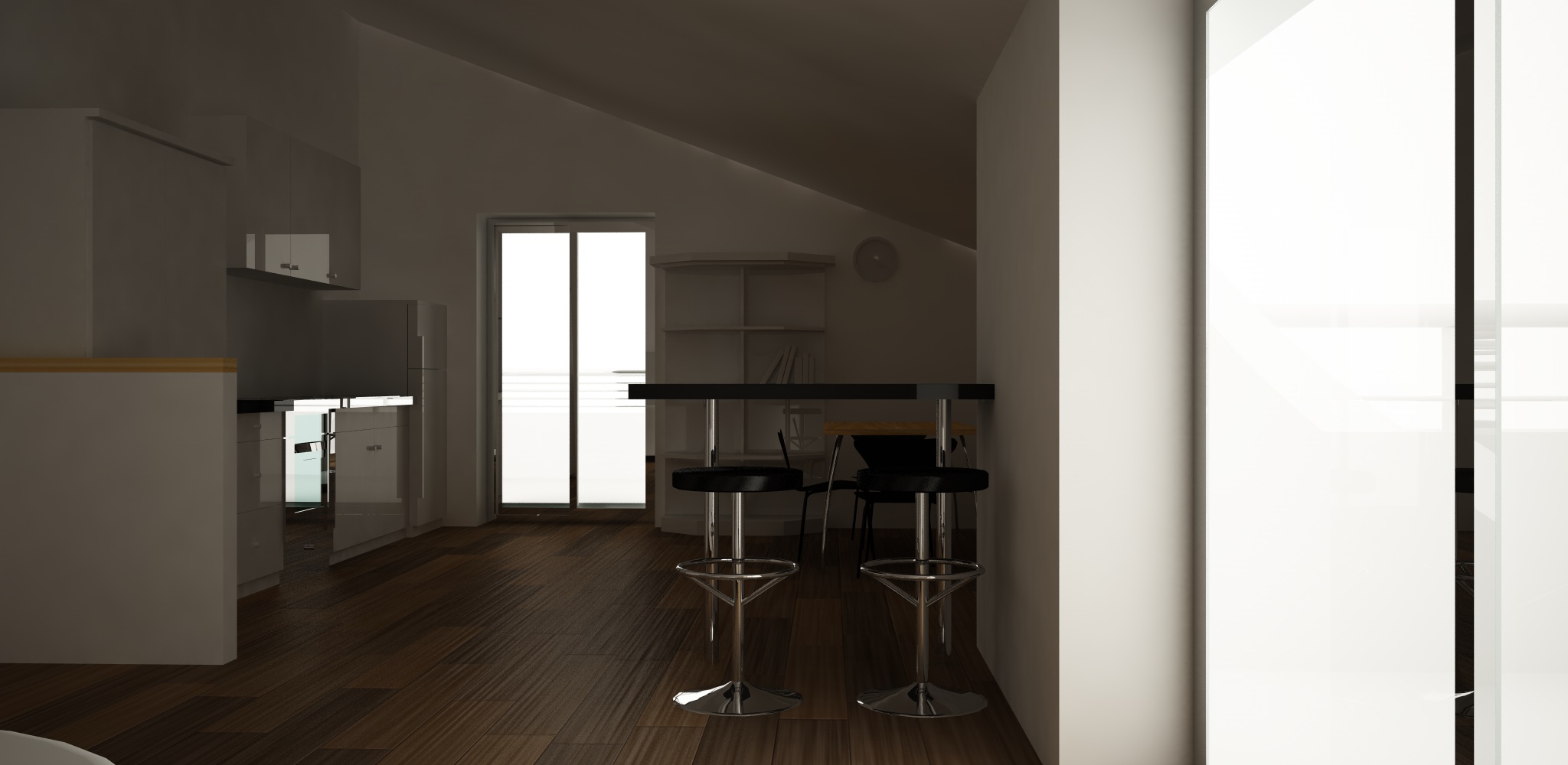 Buongiorno a tutti, ho aumentato i parametri di rendering e aggiunto una luce dietro alla camera e questi sono i risultati. Anche se la parete di fronte sembra troppo illuminata... Poi sembra che le due sedute siano sospese come anche il muretto sulla sinistra..se ci sta una luce area dietro perchè non si vedono le ombre delle sedie e il muretto?