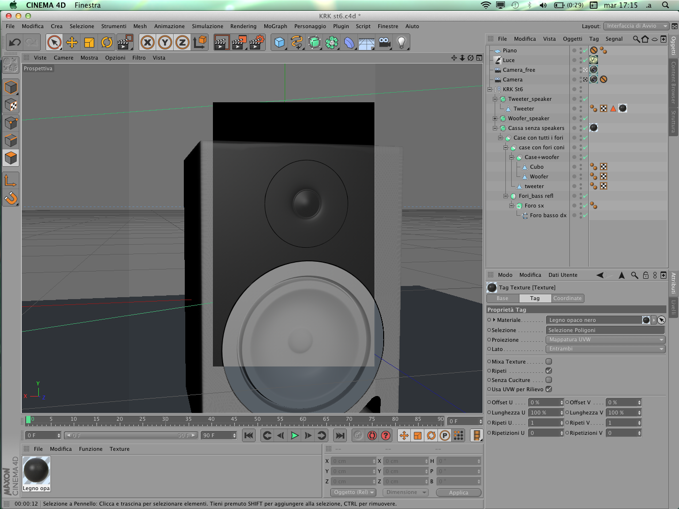 Tutto è proceduto bene fino ad ora: il problema è che devo assegnare due tipi di materiale differenti al tweeter (lo speaker piccino) del monitor.