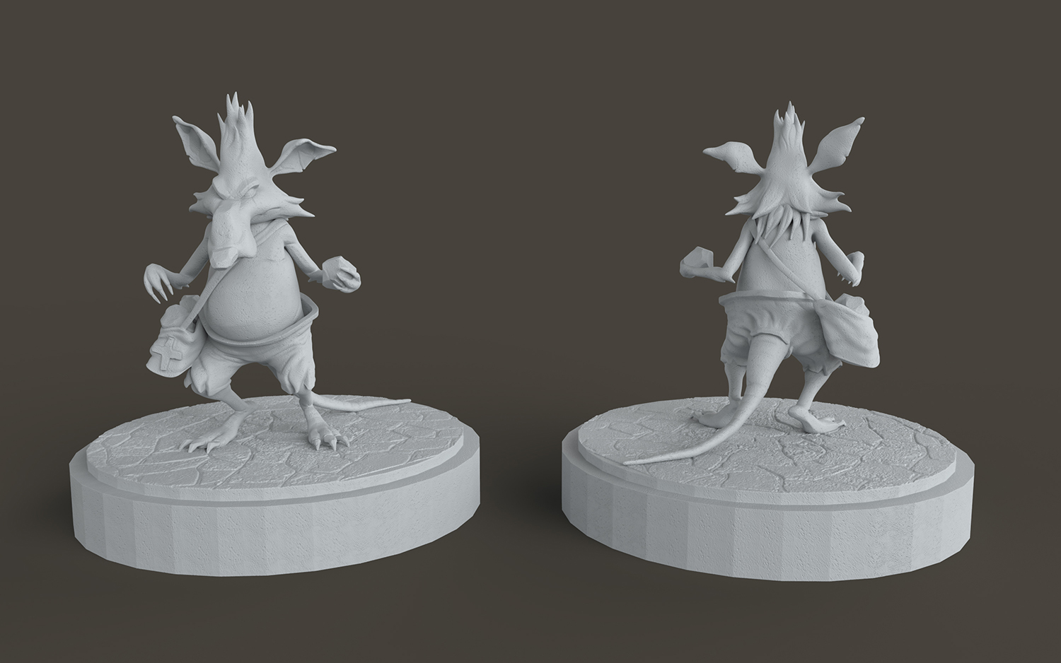 Sono d'accordo con te e infatti delle prove le avevo fatte, ma veloci come del resto anche il modello è uscito in 3-4 ore in tutto...ma la reference di un ragazzo che fa charater per videogiochi, è molto stile cartoon, mi sto confrontando con lui via mail appena mi risponde vediamo che dice. Ora è fedele al disegno magari ne farò una versione più dettagliata.