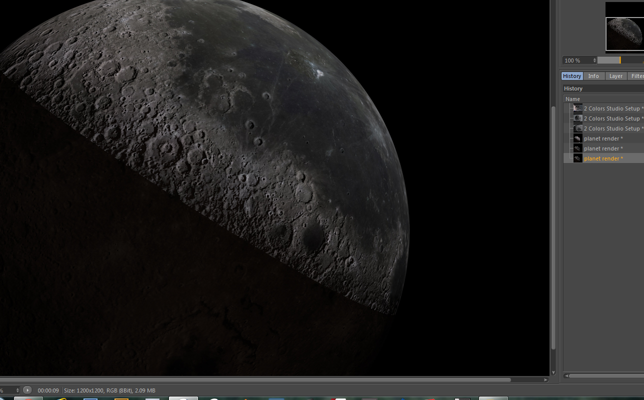 come vedete nella seguente immagine ho fatto un render della luna con la normal per i crateri ma c'è un evidente errore nel calcolo dell'ombra che è troppo definita e sembra non influenzare la mappa nell punto di transizione luce ombra