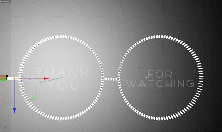 Allego comunque le due immagini che mostrano la fine del filmato, in lavorazione (domino due) e in rendering (domino 3)