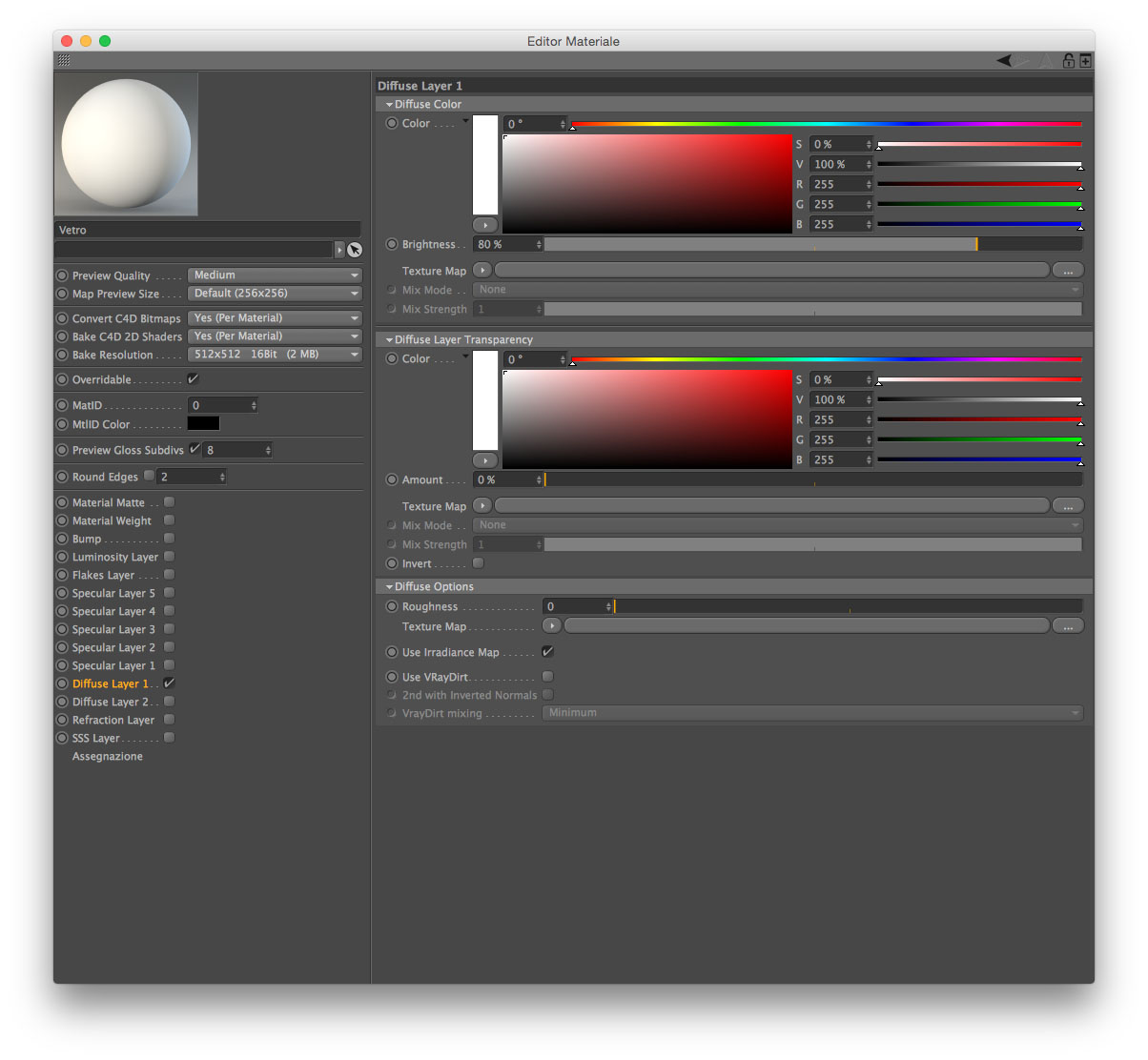 C4d R16 Vray 1.9b - Anteprima materiali
