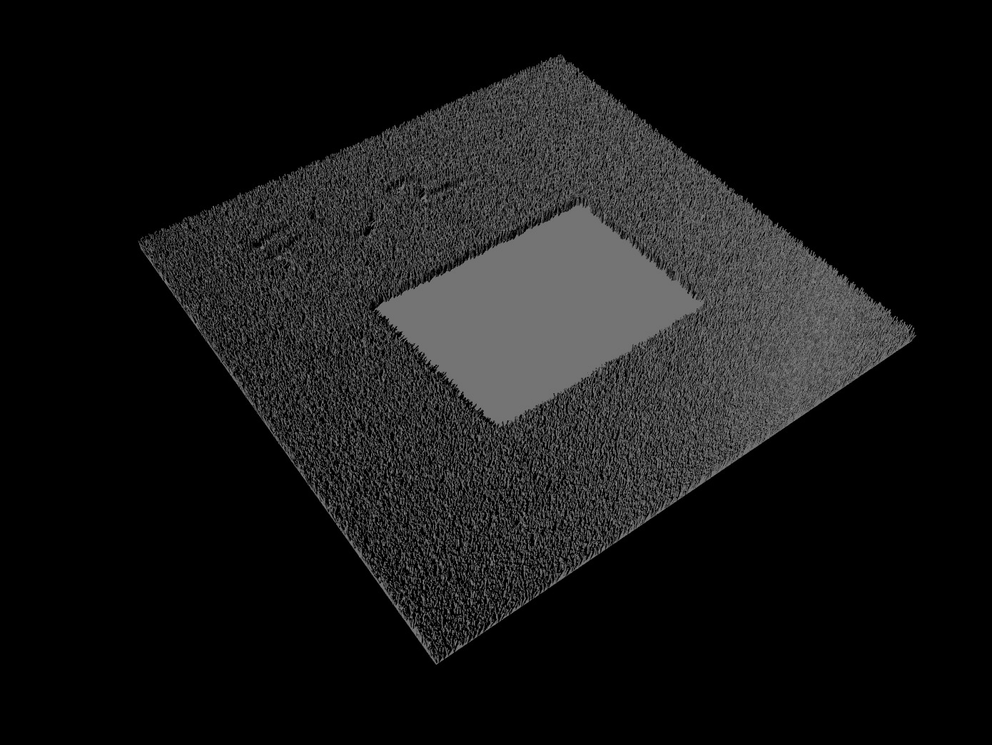 puoi disegnare un rettangolo nero su fondo bianco e mettere la texture nel density, così non crea peli nell'area nera