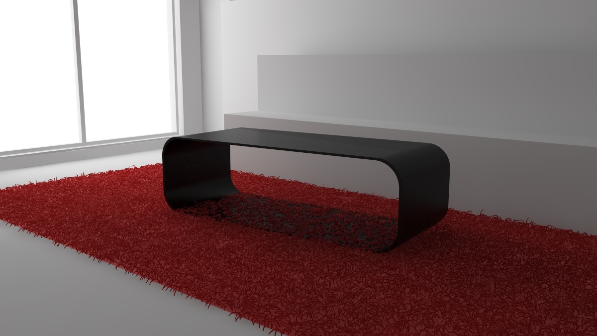 oppure puoi farlo con un grigio (da provare le intensità) nel lenght, in modo da avere peli molto corti dove c'è il tavolino e peli normali nel resto del tappeto.
