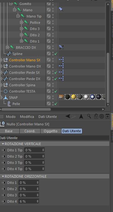 la mano puó essere ruotata indipendentemente tramite l'utilizzo di un tag vincola PSR in rotazione, applicato sulla joint "mano", che vada a seguire la rotazione di "Controller Mano SX" (oppure puoi farlo in xpresso, non cambia niente).