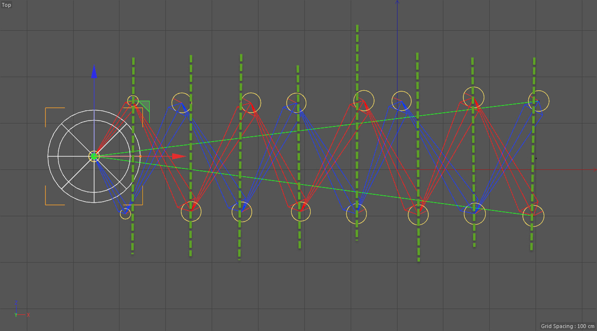 a questo mi sono aggangiato creando tante piccole ik a forma di triangolo e posizionando in gerarchia i goal e le catene