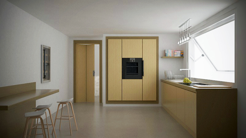Forse da modificare il tipo di parquet. Troppo classico per il genere di cucina . . .