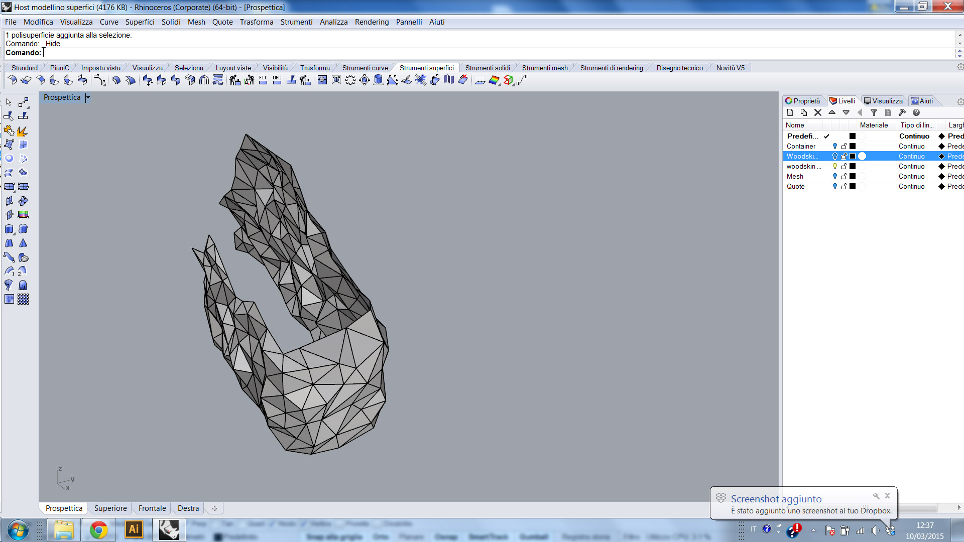 Il costo della prototipazione è proibitivo, quindi pensavo di prendere la superficie 3D, svilupparla come se fosse un lamiera, stamparla su un cartoncino e poi piegarla lungo i vari bordi, come se fosse un origami per intenderci.