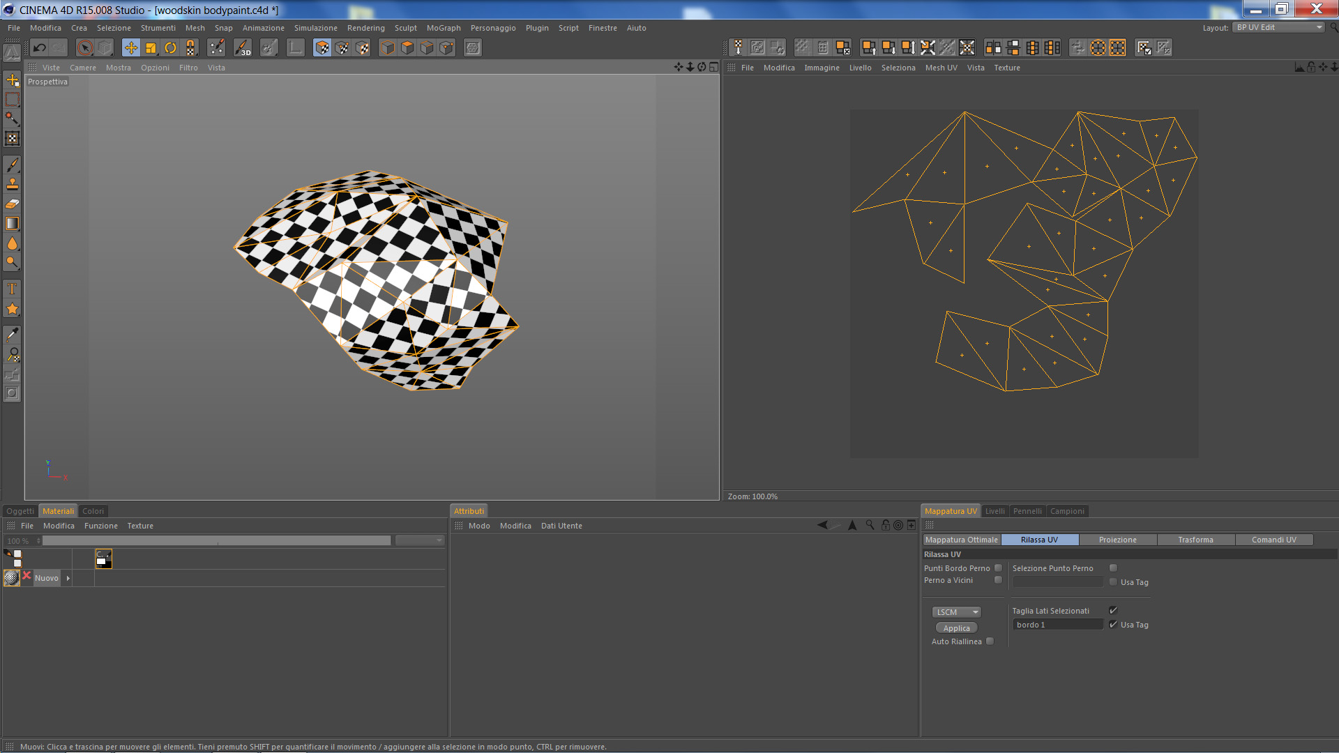 Con Rhino ero riuscito a stendere decentemente una piccola parte di copertura, cosi, visto che avevo un riscontro ho deciso di provare i settaggi di bodypaint che ci si avvicinavano di più per poi usarli sui pezzi più grandi.