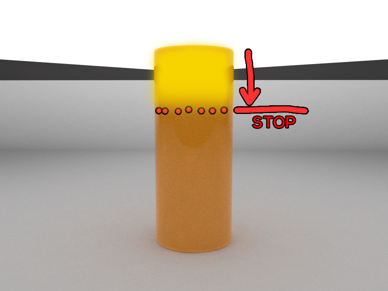 L'unica cosa che manca e' l'effetto nebbia interno, cioe' la cannuccia si dovrebbe vedere sfocata non netta, secondo me il risultato ora e' eccellente, non voglio sapere come l'hai fatto, muoio ignorante, ma forse se sei in modalita' vetro nei layer, usa anche il glossiness se hai il layer attivo...il refraction...
