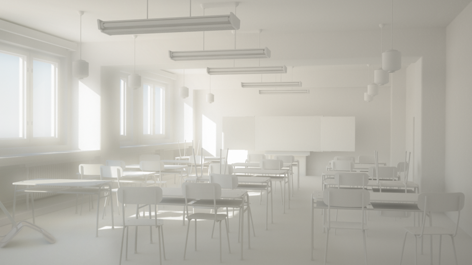 Ho pensato di risolvere togliendo i vetri dalle finestre e ovviamente torna tutto. Però si perde l'effetto della riflessione dell'interno dell'aula sulle lastre di vetro delle finestre. Per molti forse questo è un particolare irrilevante, ma sono quegli effetti che danno quel tocco di realismo in più. Sul metodo che proponi, cercherò di riflettere perché non ho capito molto, essendo un metodo che probabilmente si attaglia a Vray ma non so come a C4D.