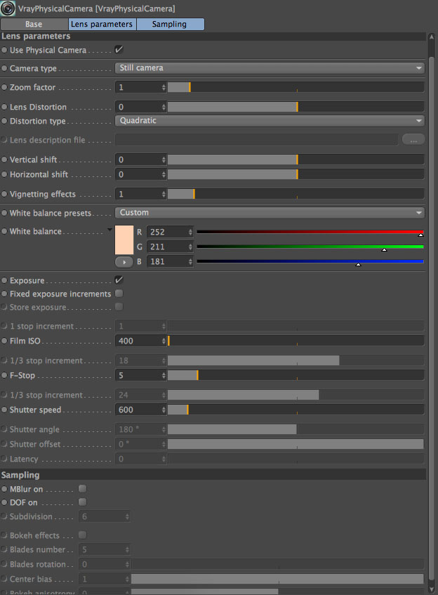physical camera ISO 400 F-Stop 5 Shutter 600