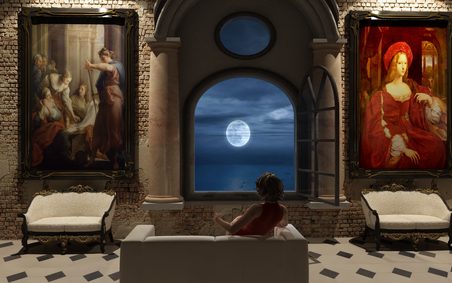 Ciao ragazzi! E' da secoli che non scrivo e visto che erano altrettanti secoli che non usavo c4d ho provato ad imbastire questa scena per togliermi di dosso un pò di ragnatele! L' intenzione era quella di creare un pò di atmosfera giocando sui chiaro-scuri e sul contrasto tra luce lunare e luce calda..l illuminazione è data da una luce spot sul celeste chiaro all esterno per simulare la luna e solamente due IES (sopra i quadri) con una tonalità calda. Che ve ne pare come inizio? Grazie a tutti quelli che vorranno intervenire!