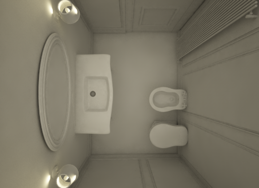 Mi trovo a renderizzare un bagno cieco, privo di qualsiasi fonte di illuminazione naturale.