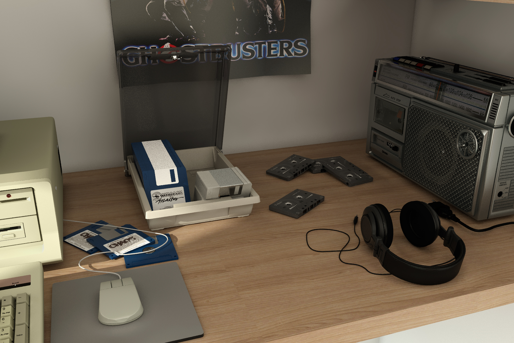 il lettore da 5 e 1/4 lo vorrei lasciare, perchè ai miei tempi non se ne trovavano più e mi è sempre dispiaciuto non averci avuto a che fare...all'inizio volevo integrare nella scena anche i floppy da 5 e 1/4 ma non avendone avuti non saprei che fare...sto cercando di reperire del materiale in merito..