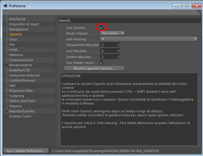 Presumo che sia un problema di openGL perchè se vado a disattivare l'opengl dalle preferenze questo problema non succede (figura 7).