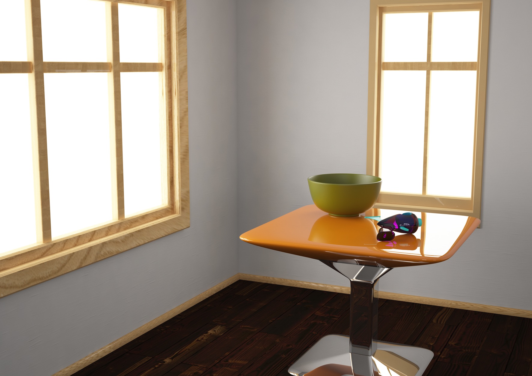 lasciando perdere il discorso di ciò che si dovrebbe vedere fuori dalle finestre, sul quale vi romperò magari in seguito, mi domandavo una cosa: perchè le riflessioni delle luci arera alle finestre non si vedono sul parquet?