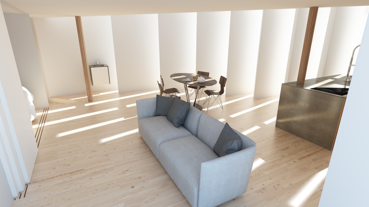 In realtà so che così è un po' spoglio, ma sono sempre un po' combattuto sul riempire la scena con tanti oggetti, perchè mi danno la sensazione di essere un elemento di distrazione a volte, e sottolineo a volte perchè la maggior parte delle volte i render di interni sono ricchi di oggetti; cerco in qualche modo di valorizzare la mia filosofia, infatti ho cambiato qualcosa per personalizzarlo e per cercare di dare una sorta di storytelling alla scena, che non so se si è intuita.