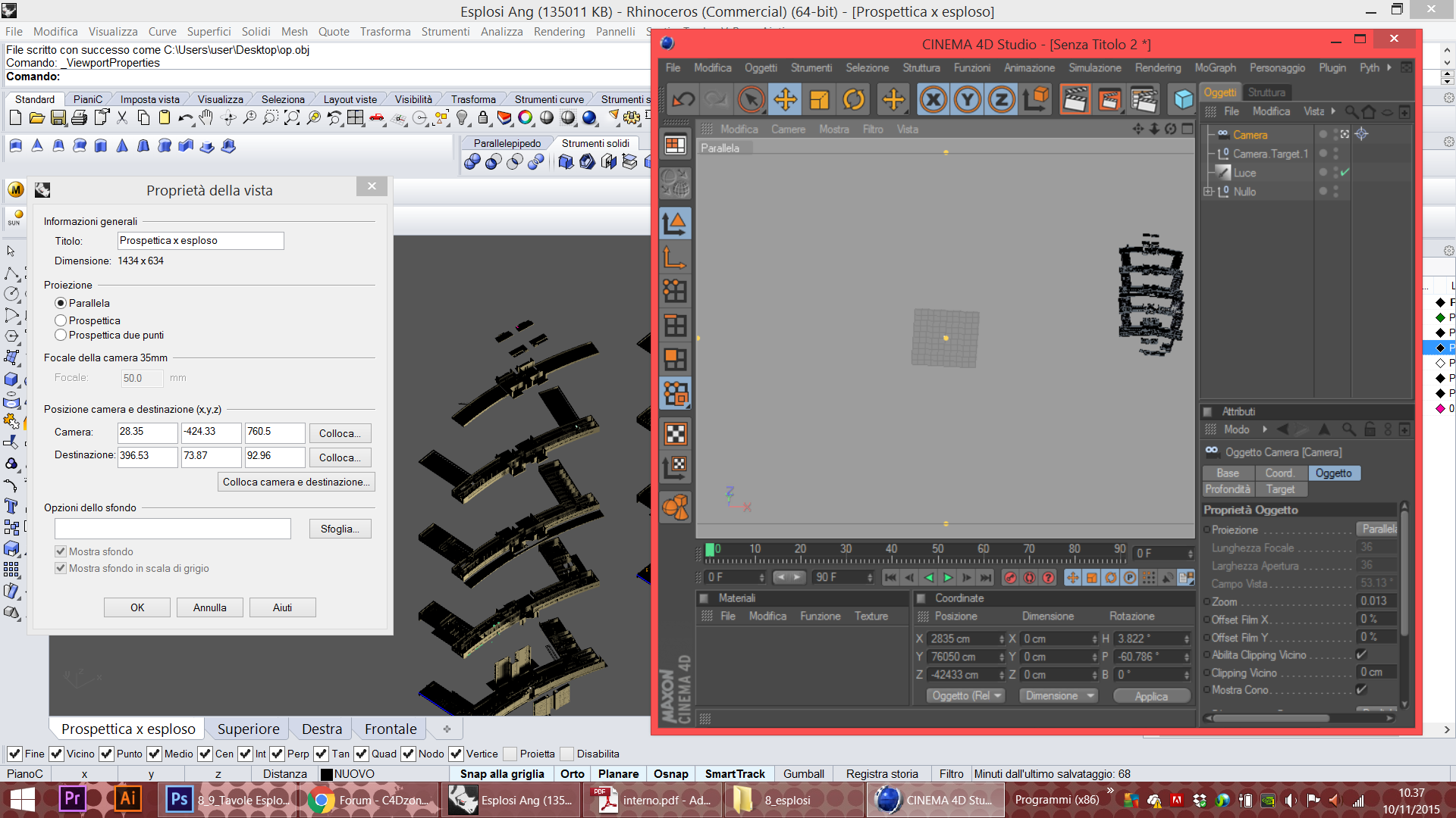 Il problema è: ho la mia vista assonometrica parallela salvata su Rhino, purtroppo non è isometrica nè dimetrica, come faccio ad avere esattamente la stessa vista su Cinema? Purtoppo Rhino non mi dice l'angolo di inclinazione, almeno io non ci sono riuscita.
