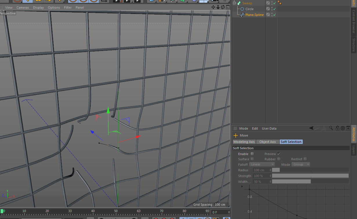 crea la rete con un piano o comunque con un solido a seconda del fabbisogno, lo suddivdi nel numero di poligoni necessari perche ogni poligono sara poi un quadretto della rete, quindi vai in modalita edge (lati) selezioni tutto, mesh -commands - edge to spline, ti viene creata una spline che rimane sotto al tuo solido, quindi clicchi sul + e sposti fuori la spline cosi puoi cancellare il solido, ora cliccando la spline a destra nel browser dovrai dargli come proprieta: type bezier - intermediate points adaptive.