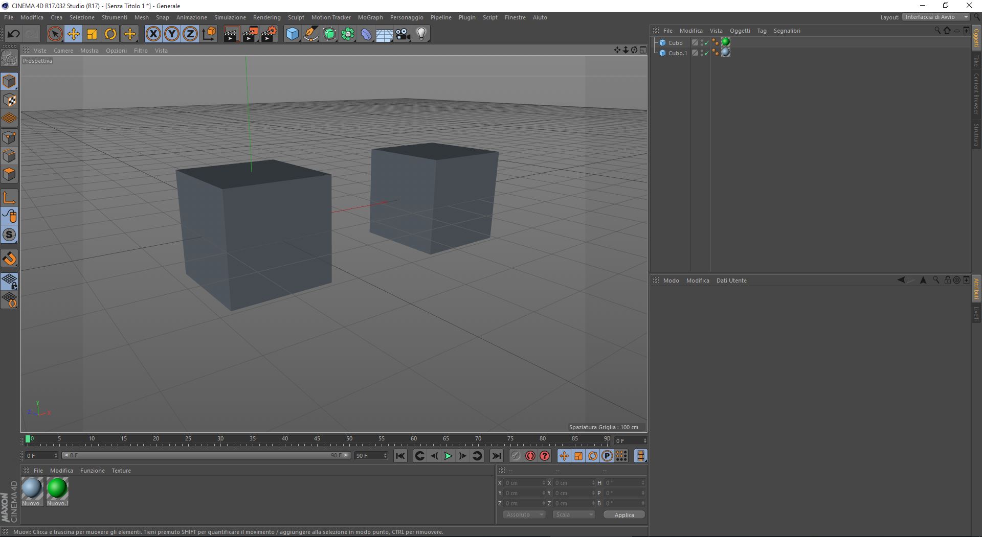 Allego una scena banale con 2 cubi e 2 materiali diversi assegnati
