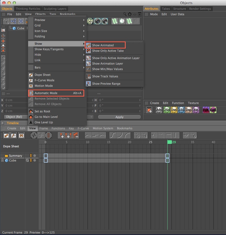 La visualizzazione di default della timeline è su Automatic Mode e con Show Animated acceso
