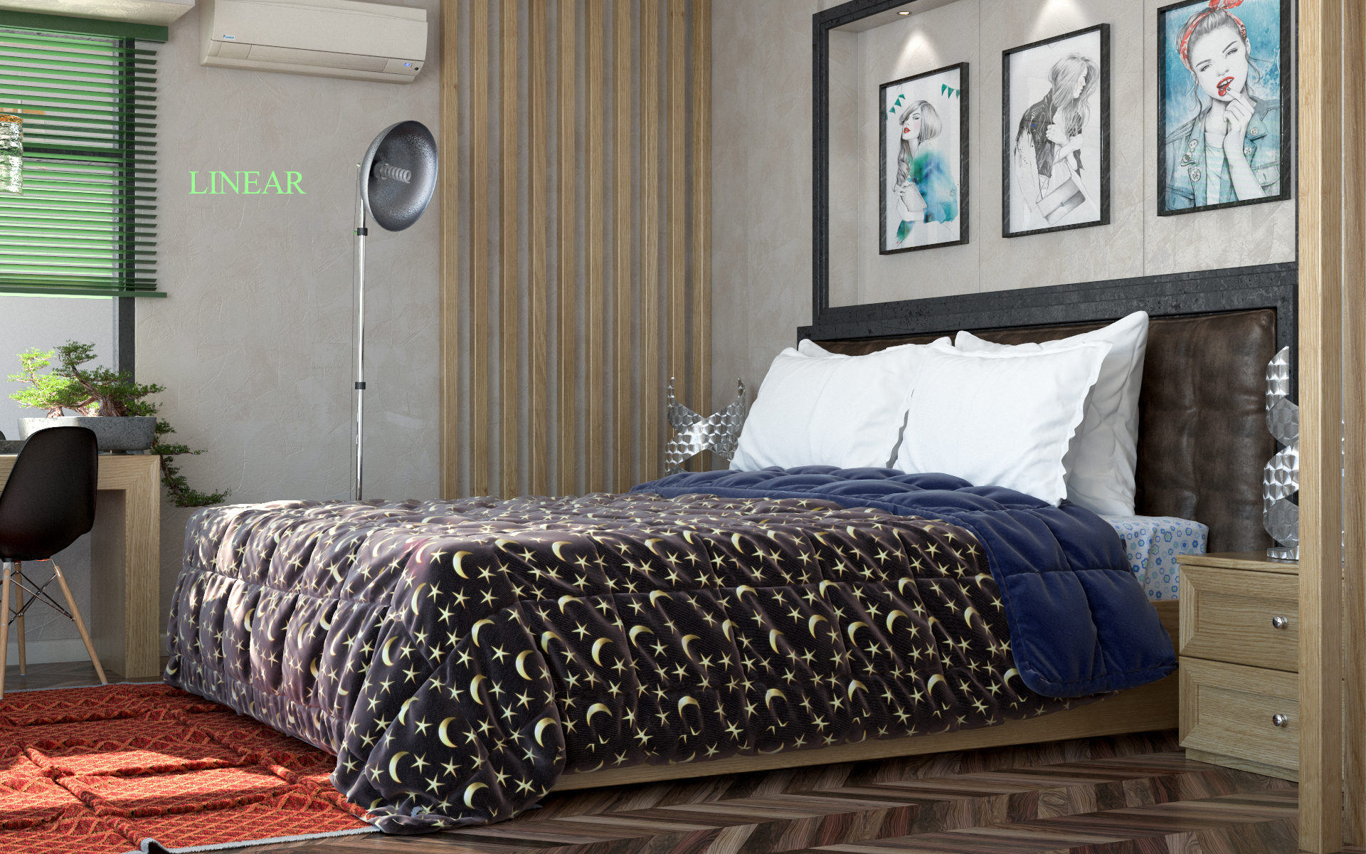 Se noti i colori e le riflessioni usando il linear sono molto più belli!! Lo noti sulle abat jour, sulla lampada in alto in vetro ecc..