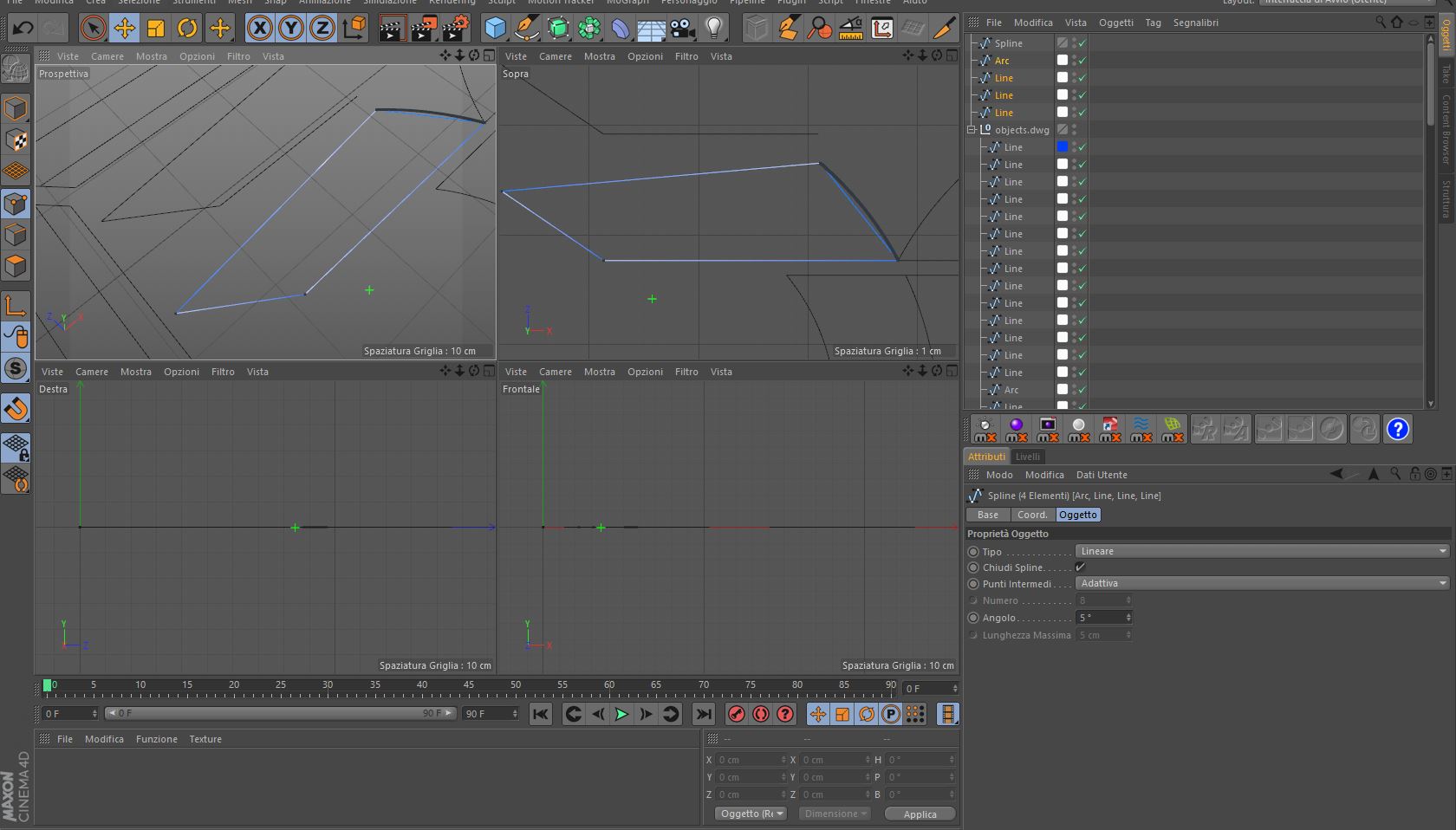 Re: Estrusione di Spline importate da Autocad in Cinema 4D